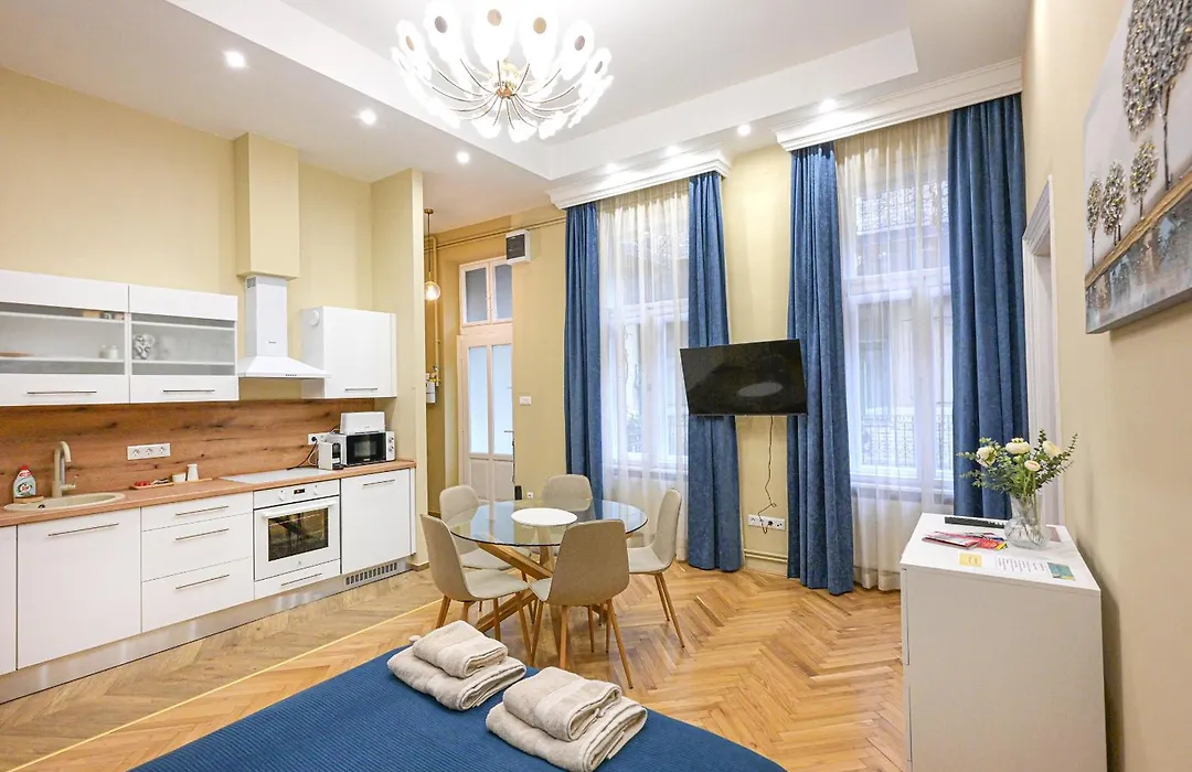 L'appartamento si trova nel quartiere 06. Terézváros di Budapest, a una distanza di 2 km dall'Ospedale nella Roccia. I luoghi da visitare includono il Museo e le Rovine di Aquincum a circa 15 minuti in macchina da quest'appartamento. La Casa del terrore è situato a breve distanza dall'alloggio.